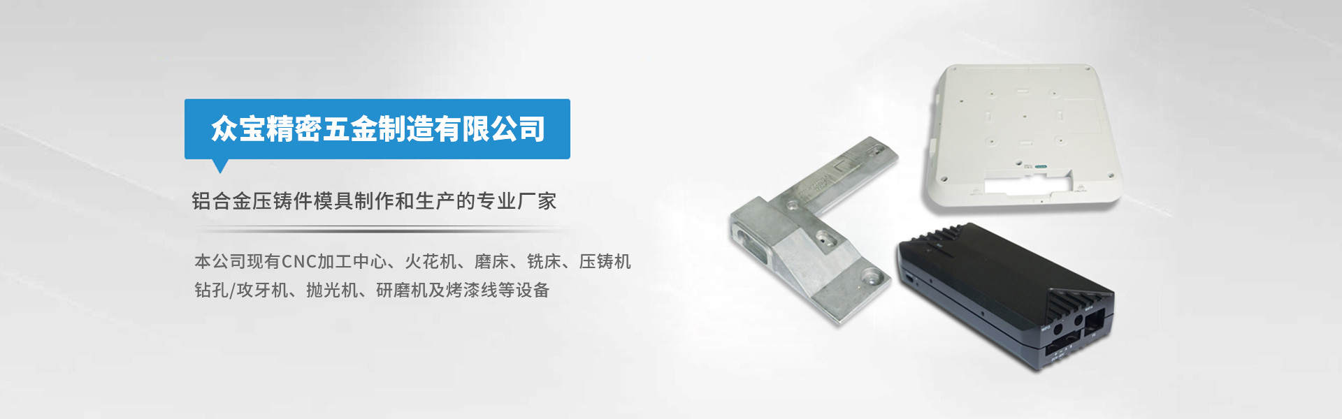 東莞市東城眾寶精密五金制造有限公司 鋁合金壓鑄件模具制作和生產(chǎn)的專業(yè)廠家 實現(xiàn)從圖紙-模具-壓鑄-機(jī)加-清理-拋光研磨以及表面噴油處理一站式的優(yōu)質(zhì)服務(wù)